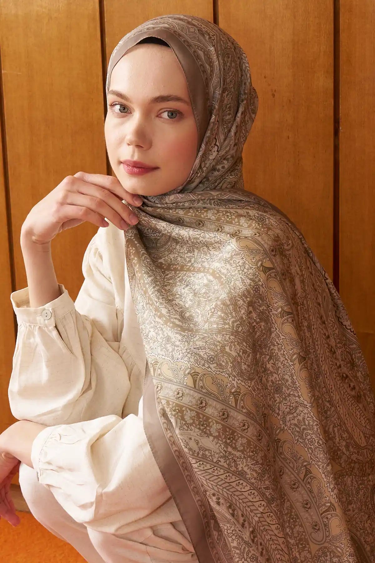 Boteh Desenli Bej Şal - MK01