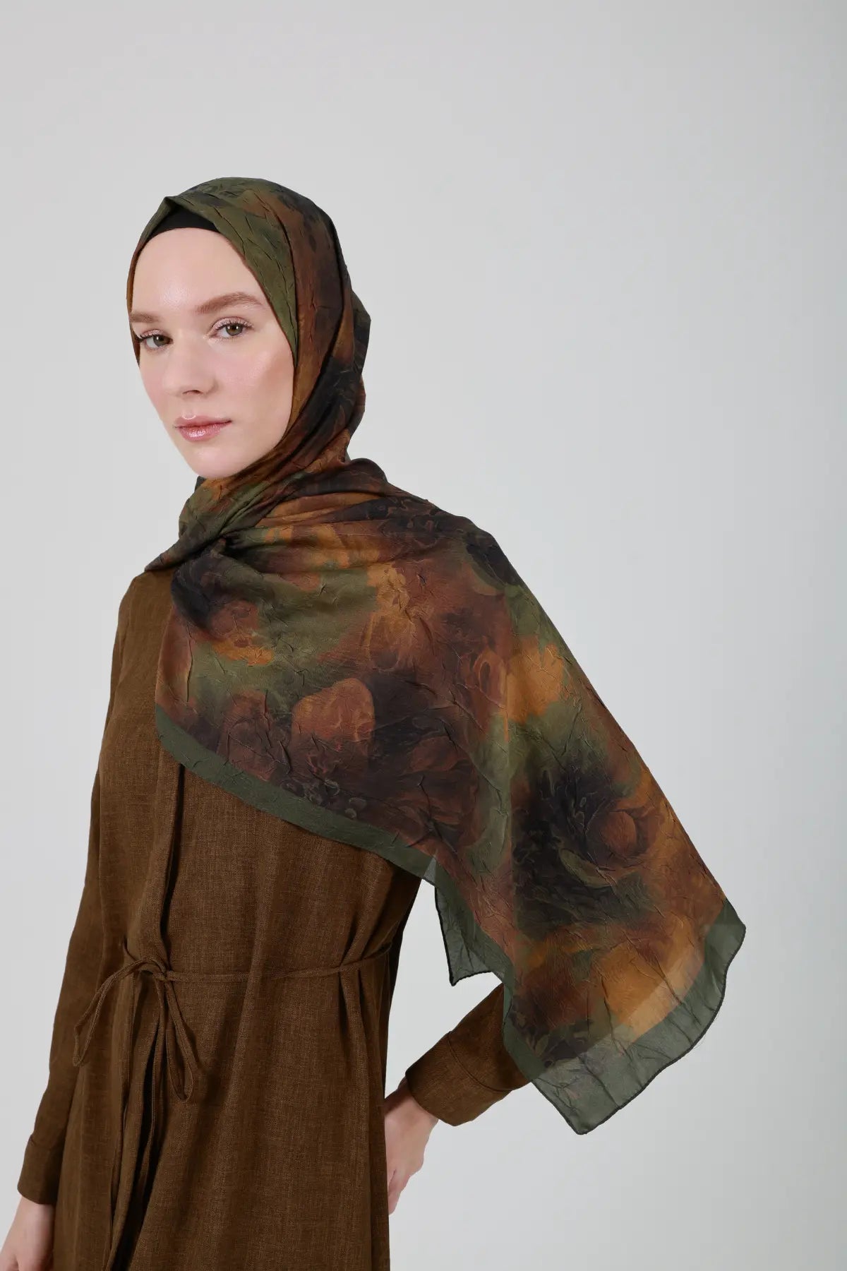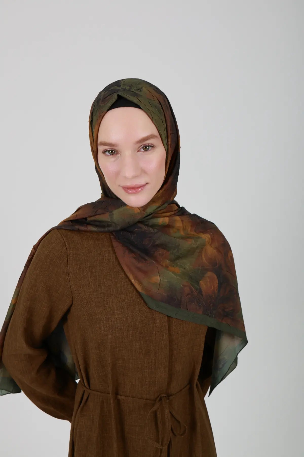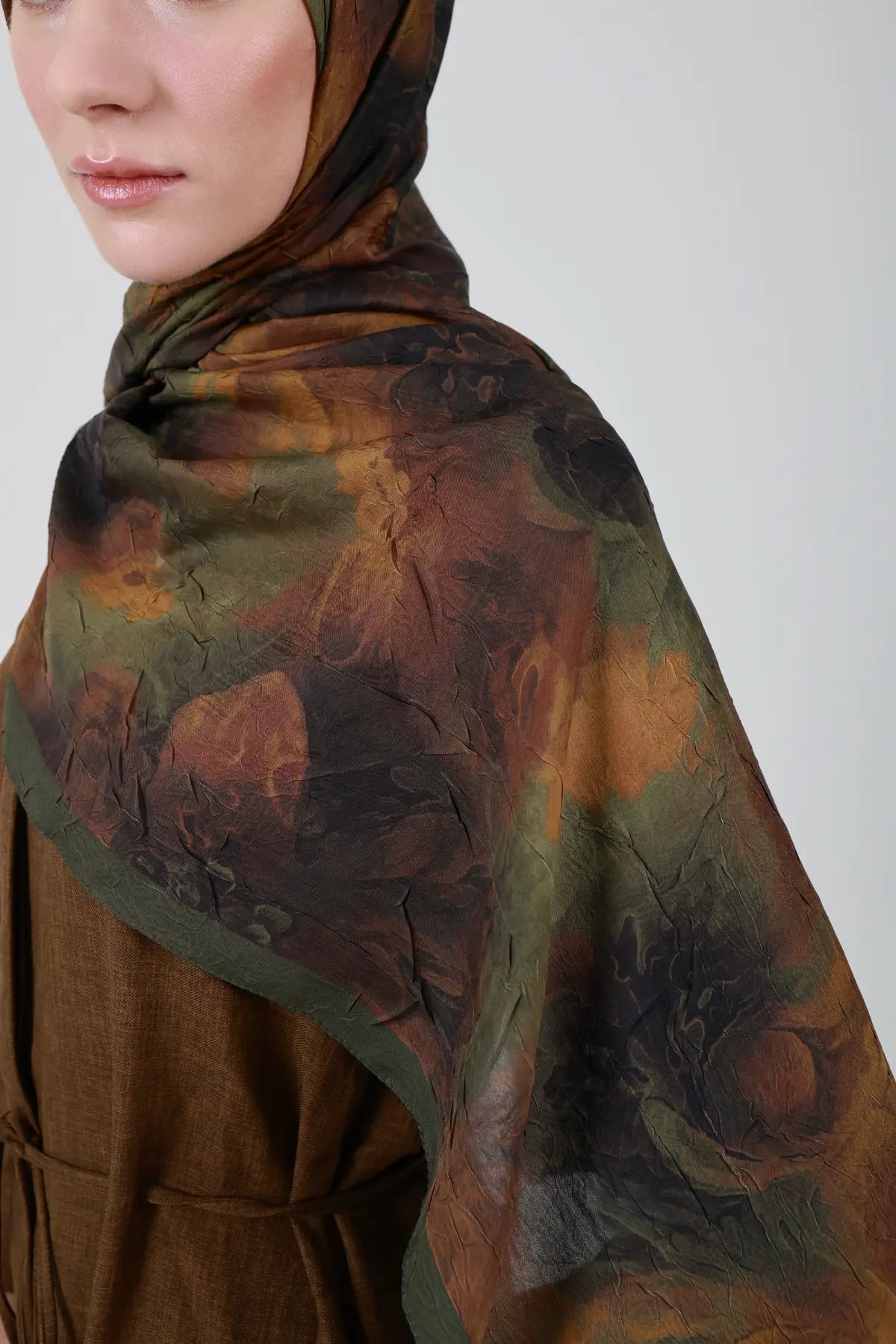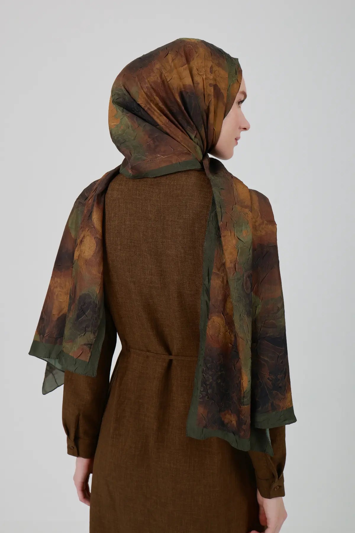 Neva Desenli Hardal Yeşil Şal - S25