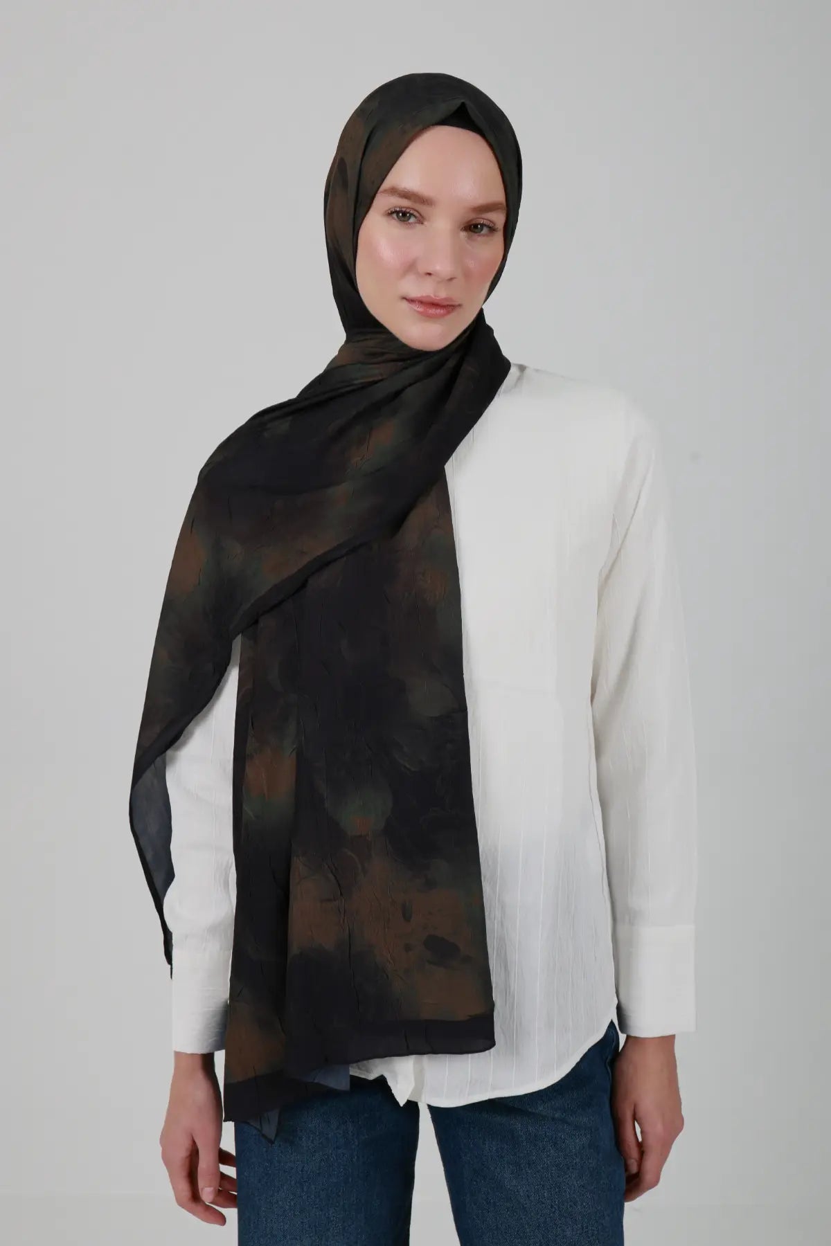 Neva Desenli Kahve Yeşil Şal - S28