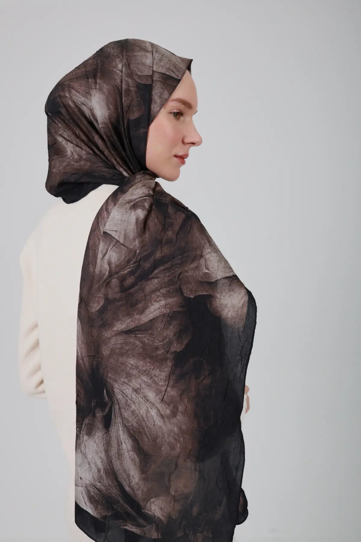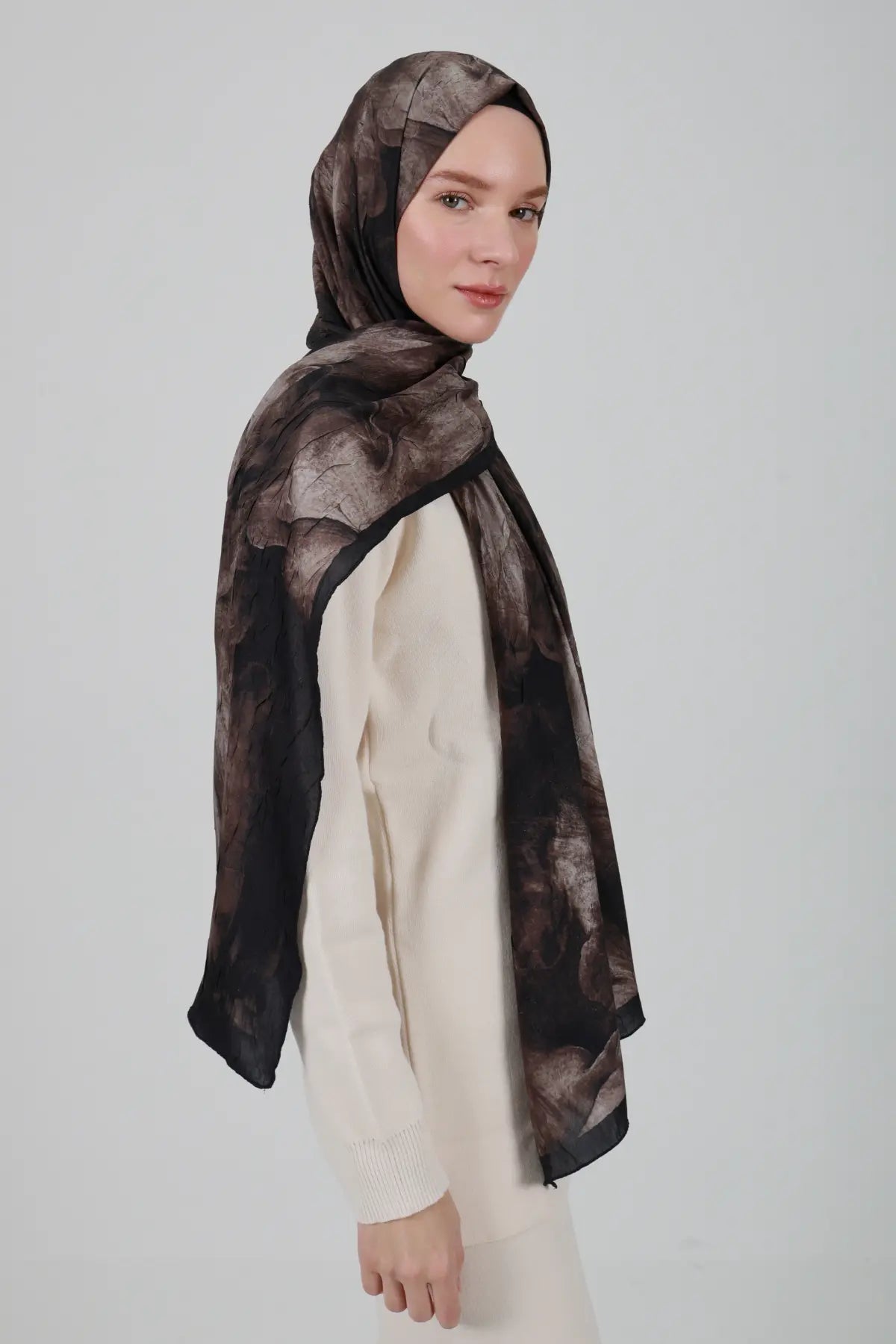 Soyut Desenli Sepya Şal - M22