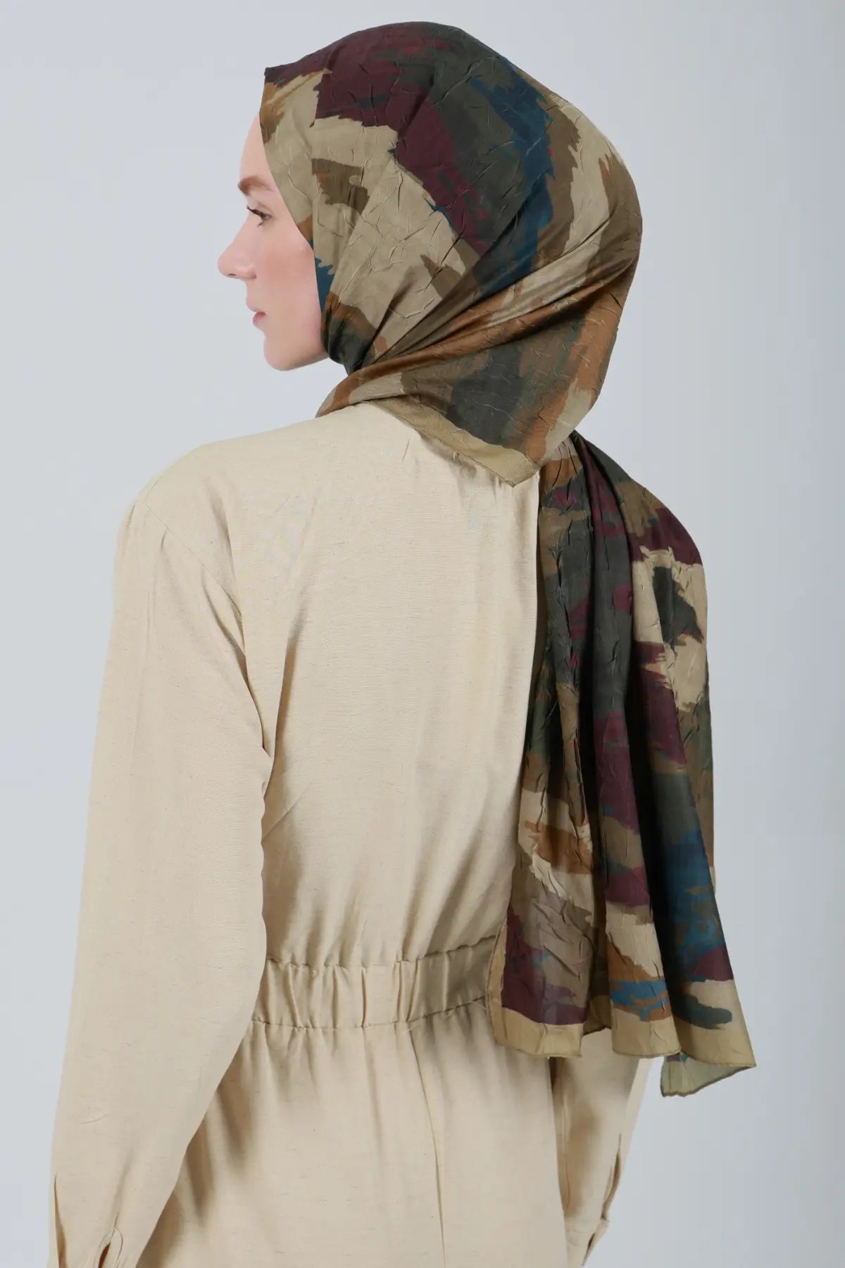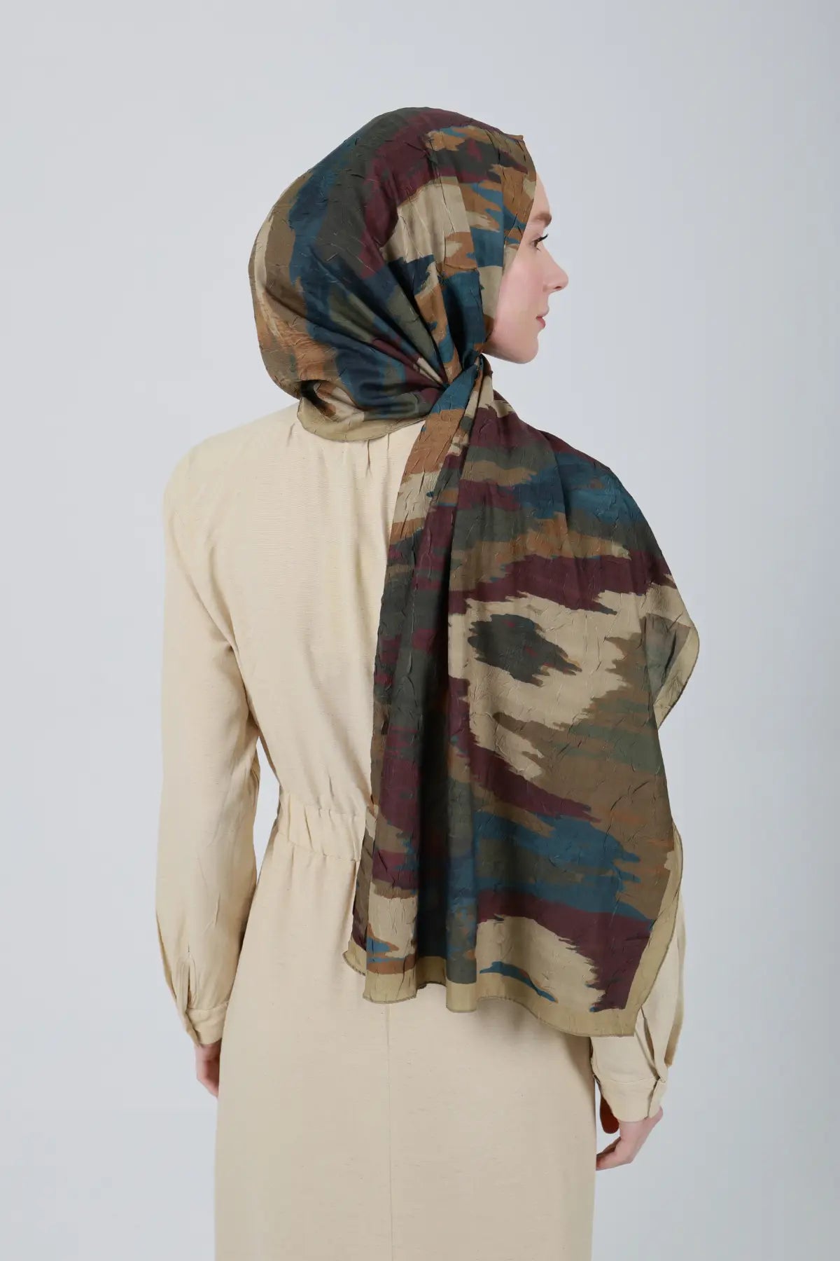 Zigzag Desenli Yağ Yeşili Şal - M26